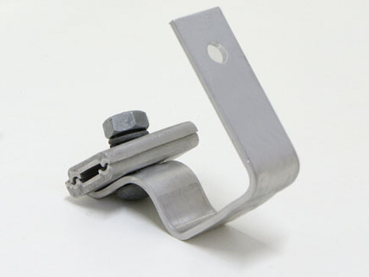 Se utiliza para la sujeción de TAP O RAQUETAS al cable mensajero, el cual debe tener la curva de dilatación, es manufacturado con grapa de aluminio y soporte de acero galvanizado
